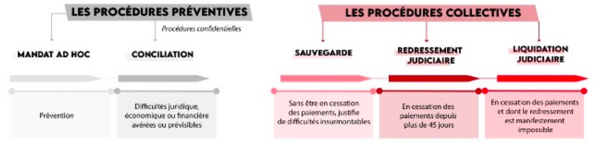 Ces deux procédures permettent à l’entreprise de chercher des solutions avec l’aide d’un expert de la procédure, tout en conservant le contrôle de sa gestion et en préservant la confidentialité de ses démarches.