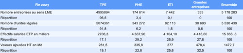 Les observations ci-après se caleront sur les entreprises selon la loi LME. Sont exclues un grand nombre de petites unités (dont les microentreprises), ayant un faible poids économique), ce qui fragilise la bonne connaissance des TPE).